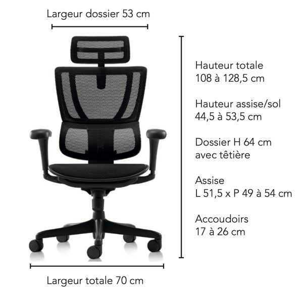 | Base et roulettes | Base nylon 680 mm, roulettes souples 65 mm |