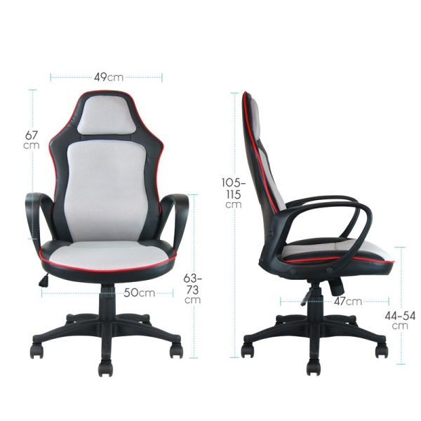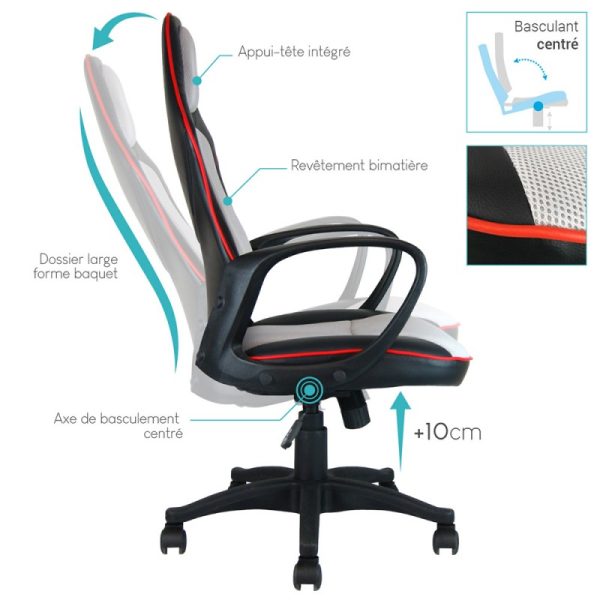 La chaise gaming pas cher ALBALI propose un style gamer moderne à prix accessible. Son design noir et gris avec liseré rouge rappelle les sièges de course.