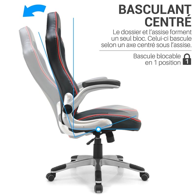 • Basculant centré réglable : Le siège bascule en arrière avec tension ajustable selon votre poids
