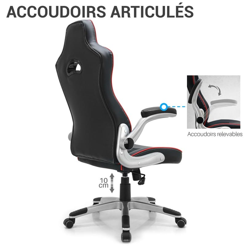 • Design gaming noir et rouge : Liseré rouge sur simili cuir noir pour un look sport et moderne