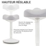 | Réglage hauteur | 58 à 83 cm, ajustement via 2 boutons sous l’assise |